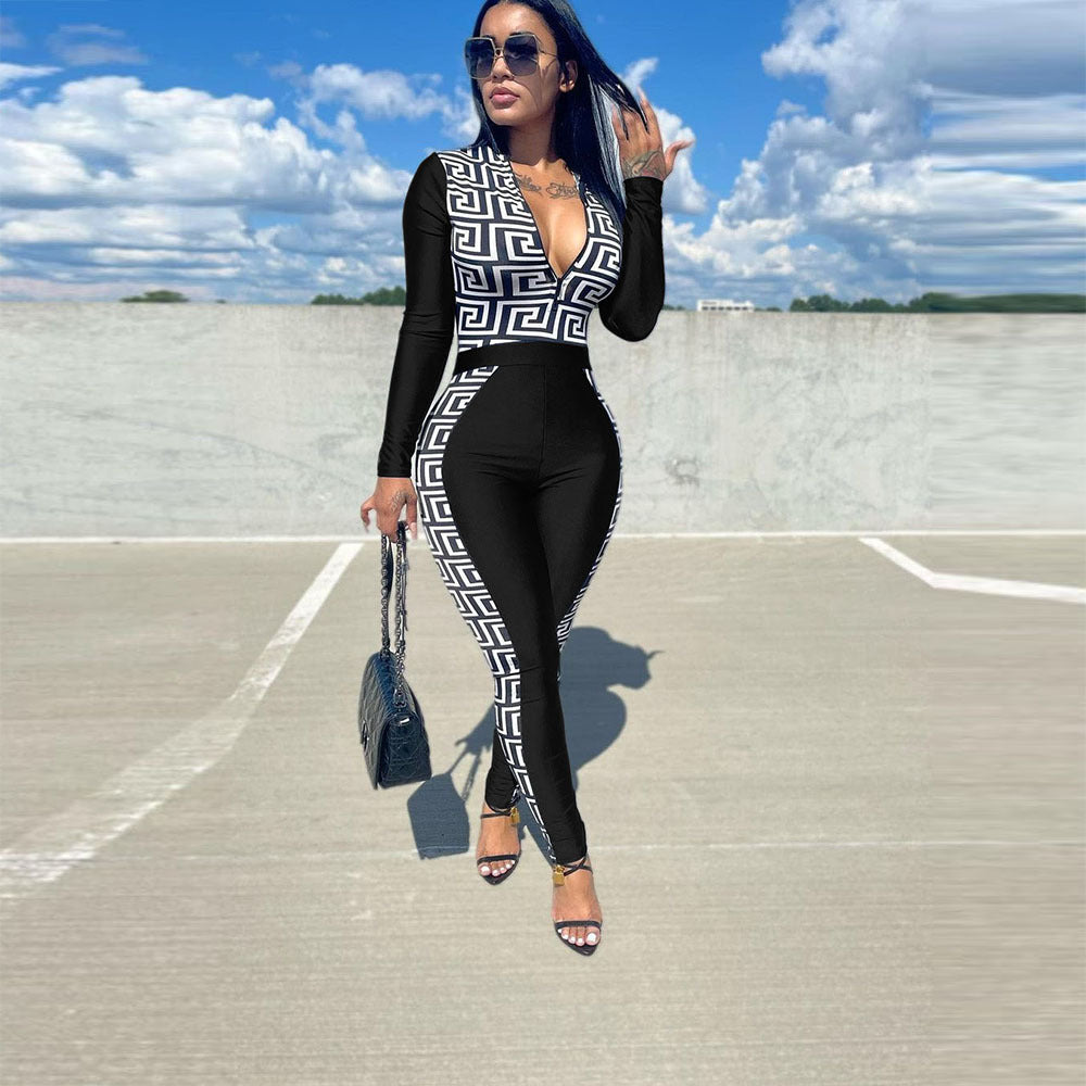 Long Sleeve Geometric Print Jumpsuit