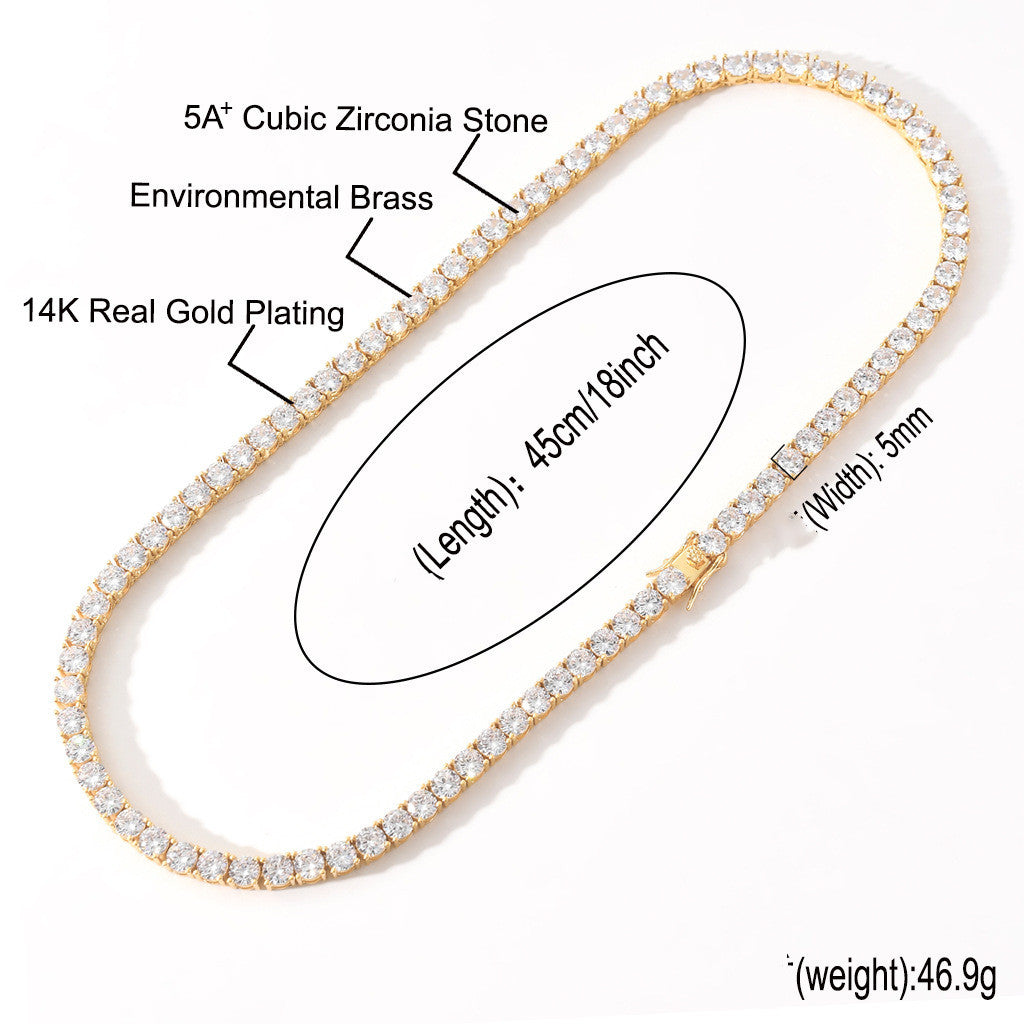 Product Name: 3mm 4mm 5mm Single Row Zircon Hip Hop Tennis Chain