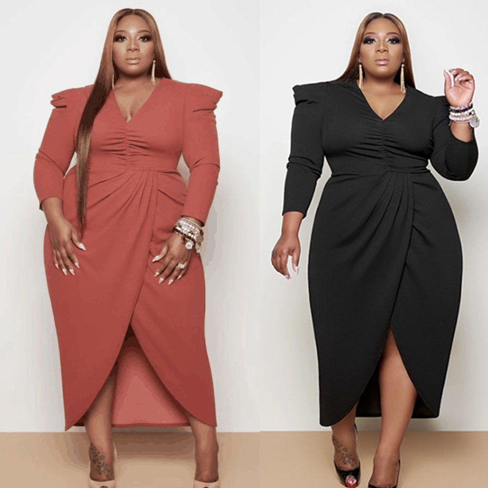 V-Neck Long Sleeve Dress