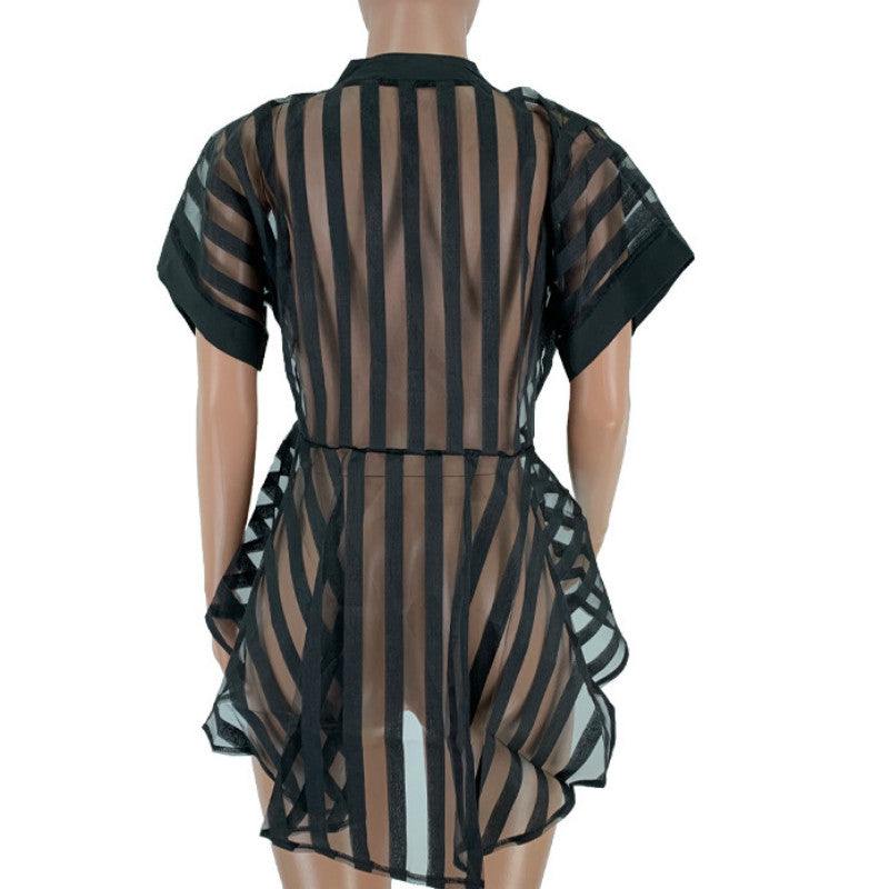 Style: Fashion Sexy Casual Mesh Sheer Shirts